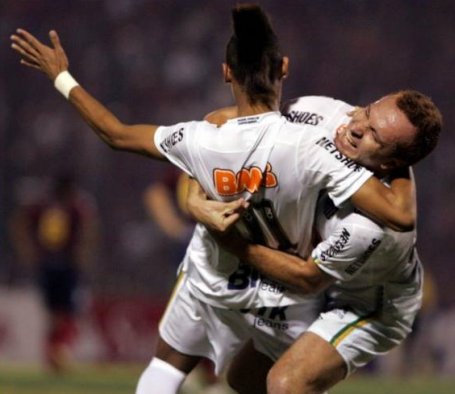 Zé Eduardo se movimenta bem, mas a distância entre ele e Neymar faz com que o Santos tenha menos finalizações. Em uma bola isolada da área do Santos diretamente para a outra área, o zagueiro Pedro Benítez disputando a bola com Neymar dá leve desvio para o goleiro que franga feio e espalma a bola para o gol.